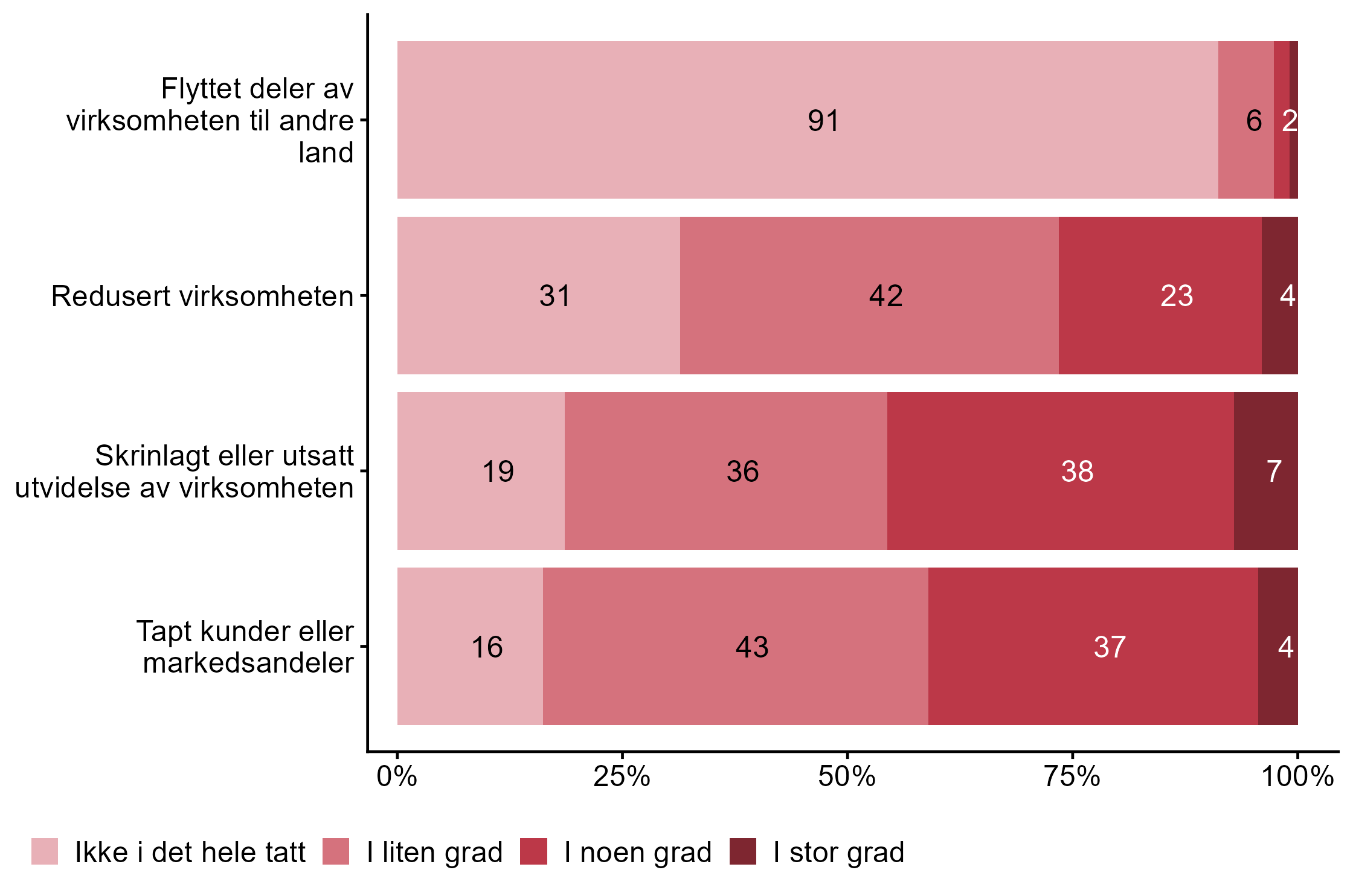Vi ser svarene i sammenheng med bedriftens størrelse og geografiske plassering.