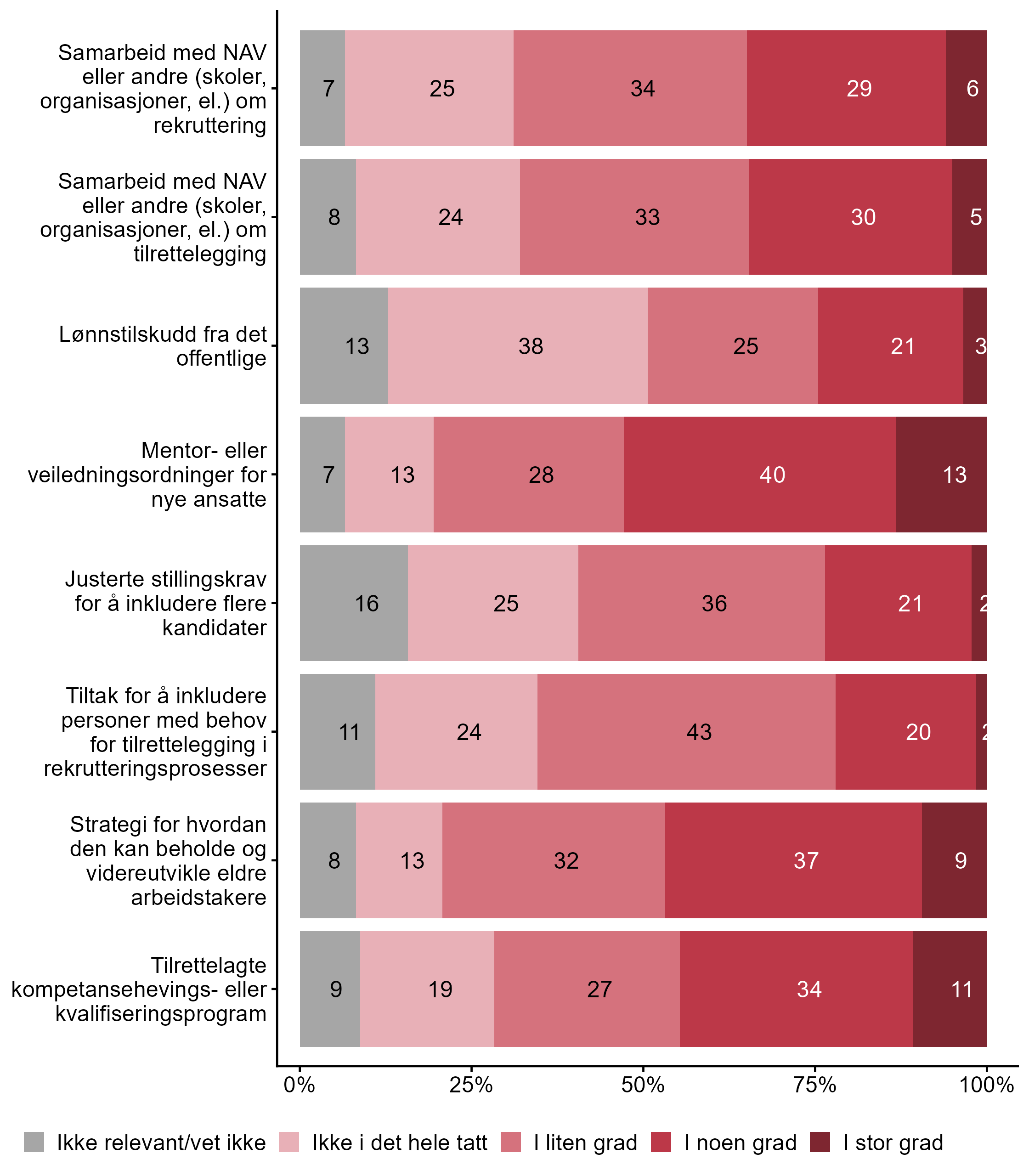 5.3 I hvilken grad har bedriften følgende tiltak eller ordninger i dag?