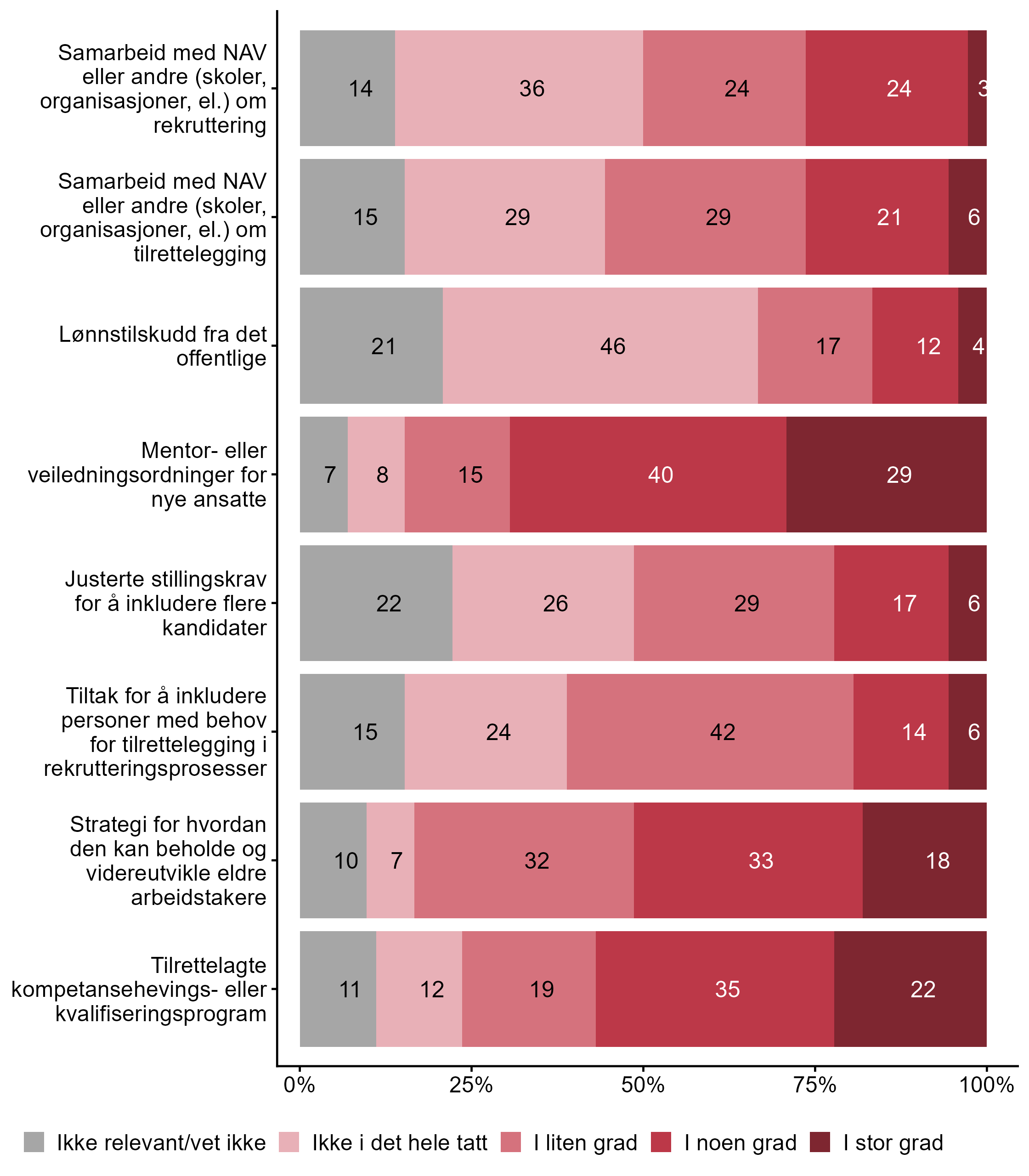 5.3 I hvilken grad har bedriften følgende tiltak eller ordninger i dag?