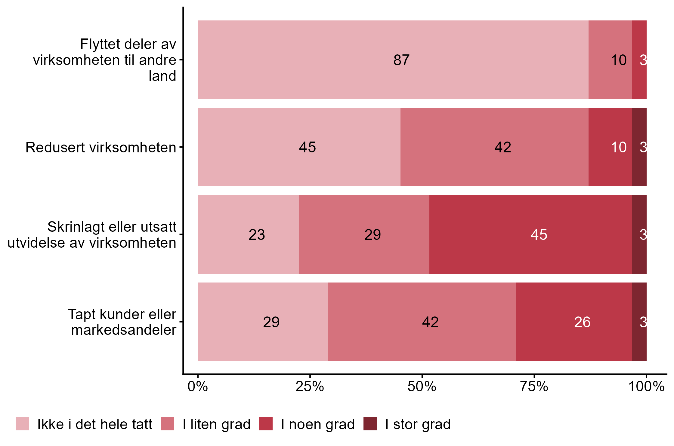 Færre respondenter svarte I noen grad eller I stor grad for Redusert virksomheten i målgruppen (0,13) enn i andre grupper (0,24).