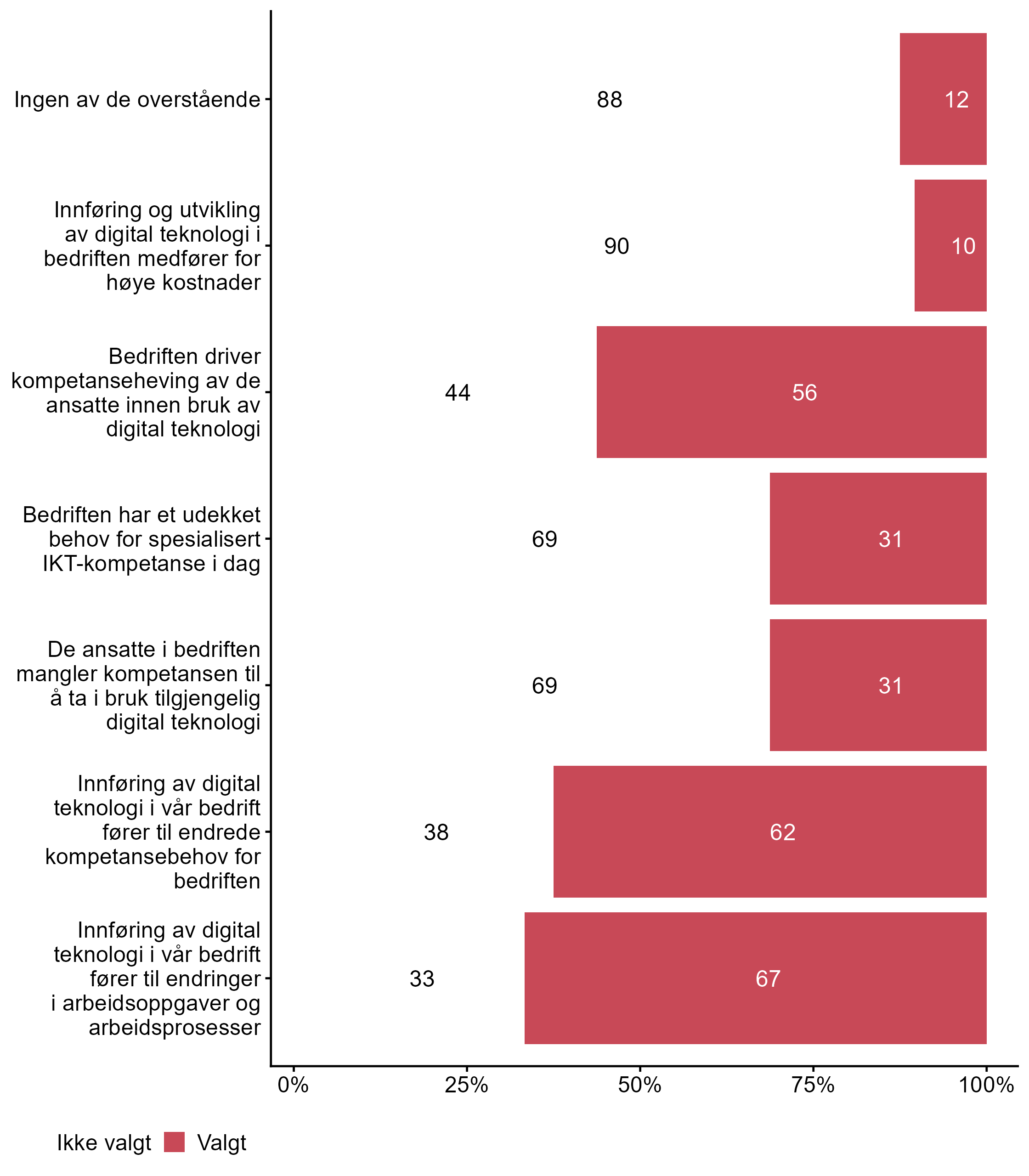 | Programmeringskompetanse (software) Generell IKT-kompetanse blant de ansatte | 56 | 44 | 9 |