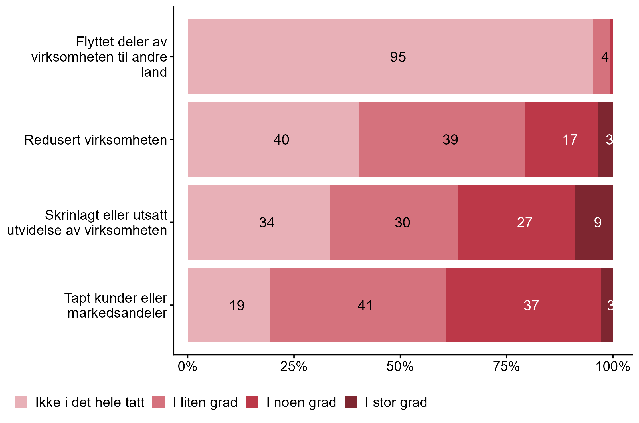 Vi ser svarene i sammenheng med bedriftens størrelse og geografiske plassering.