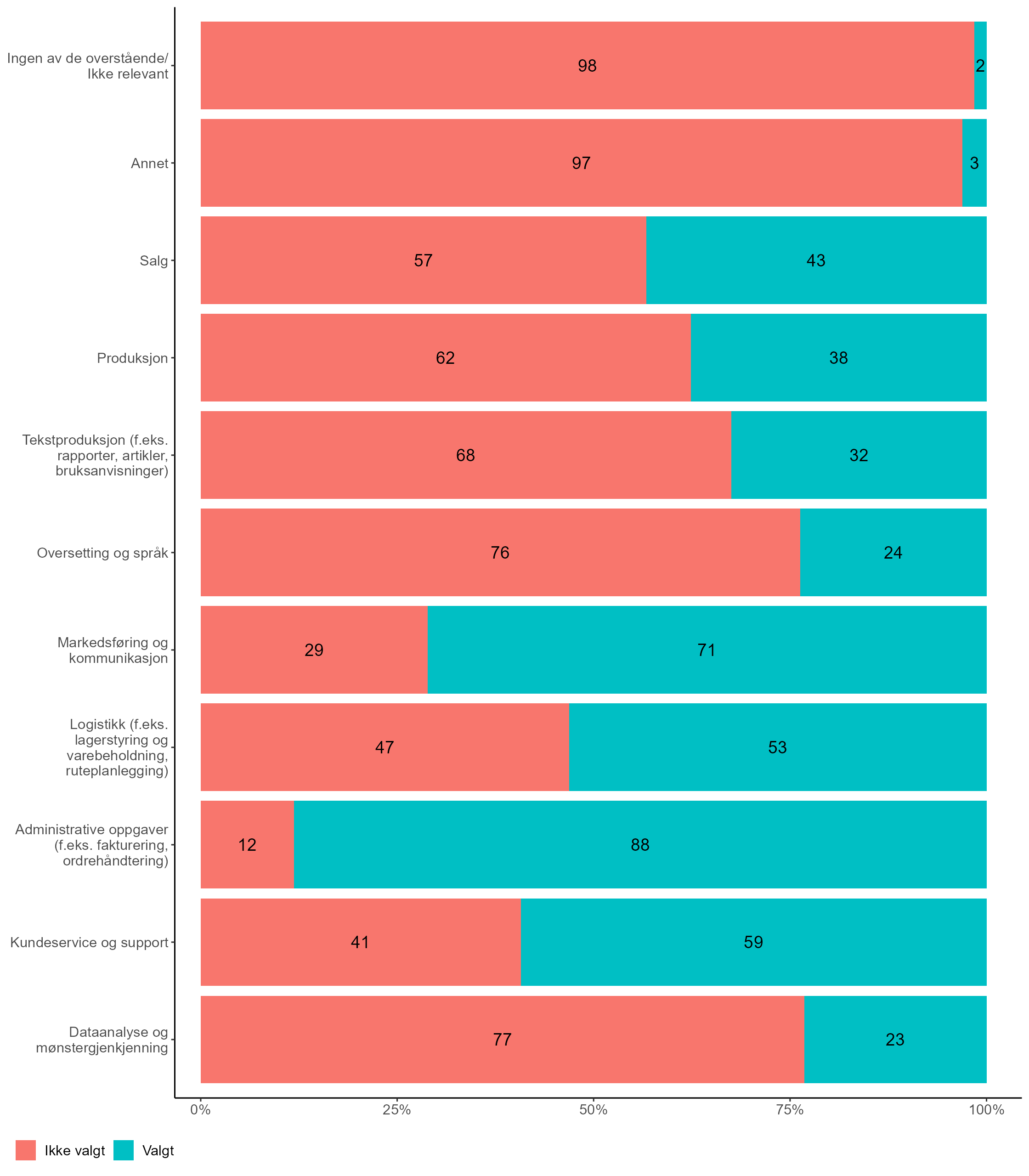 Figur 6.3 viser hvilke områder bedriftene som svarte på undersøkelsen bruker digital teknologi.