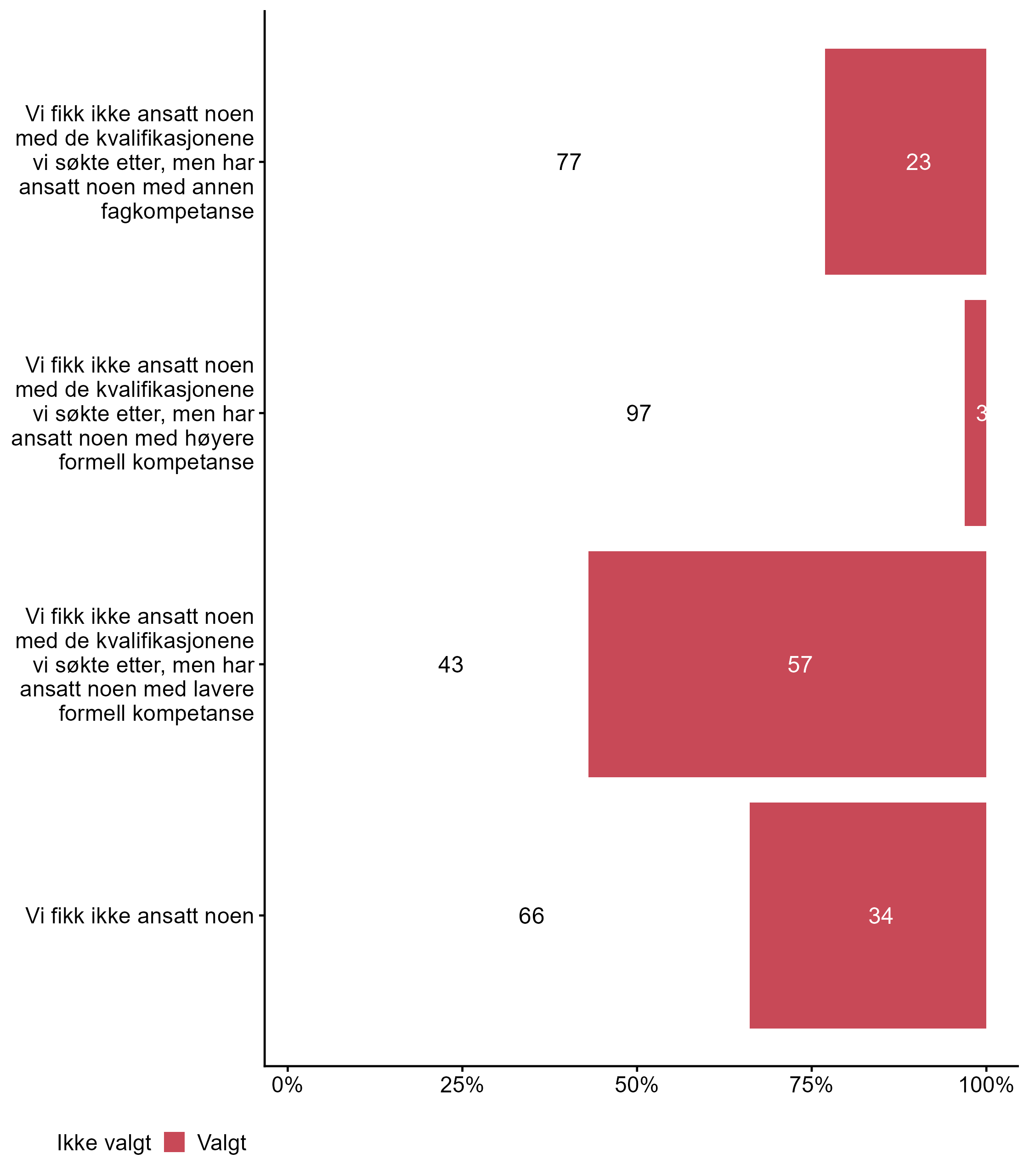 4.3 Du har svart at bedriften har forsøkt å rekruttere personer det siste året uten å få tak i ønsket kompetanse. Hva er årsaken(e) til at bedriften ikke fikk ansatt noen med ønsket kompetanse?