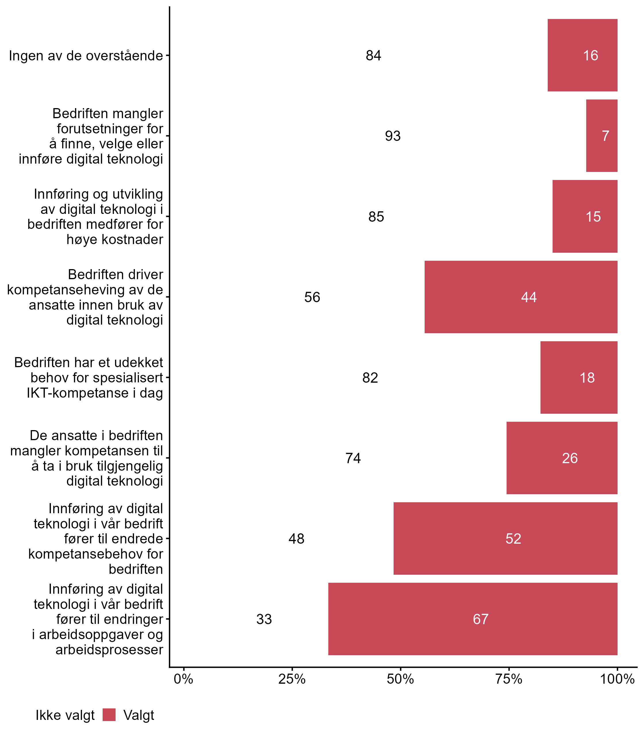 | Standard programvare (f.eks. Microsoft Office) Generell IKT-kompetanse blant de ansatte | 7 | 93 | 652 |