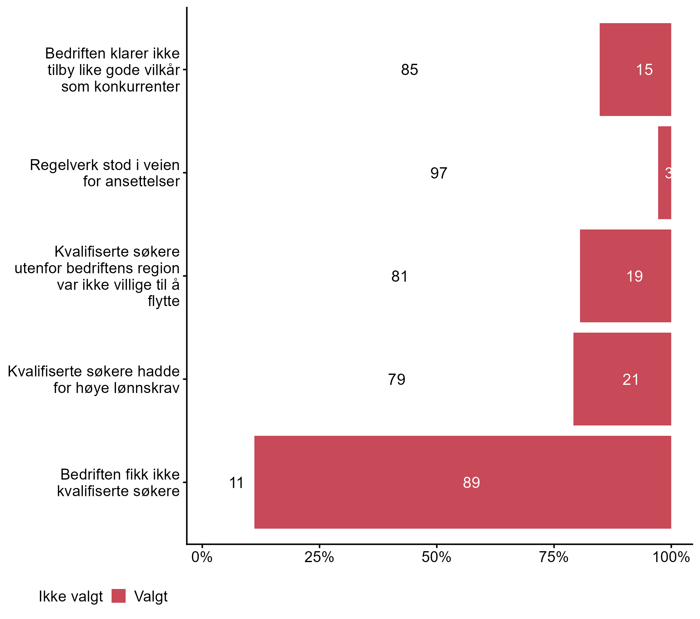4.3 Du har svart at bedriften har forsøkt å rekruttere personer det siste året uten å få tak i ønsket kompetanse. Hva er årsaken(e) til at bedriften ikke fikk ansatt noen med ønsket kompetanse?