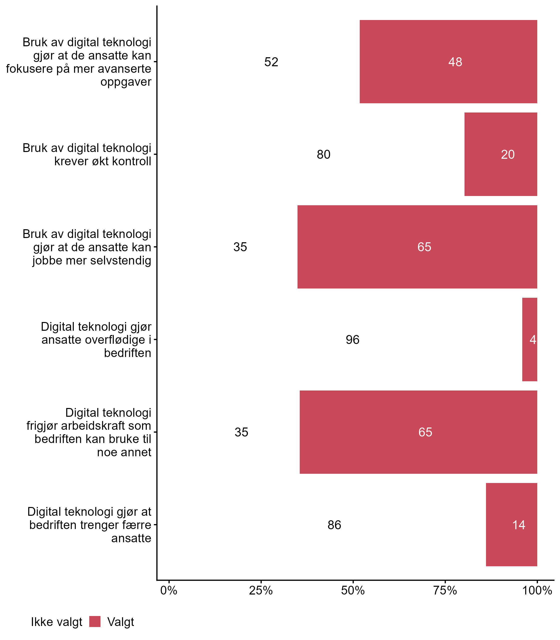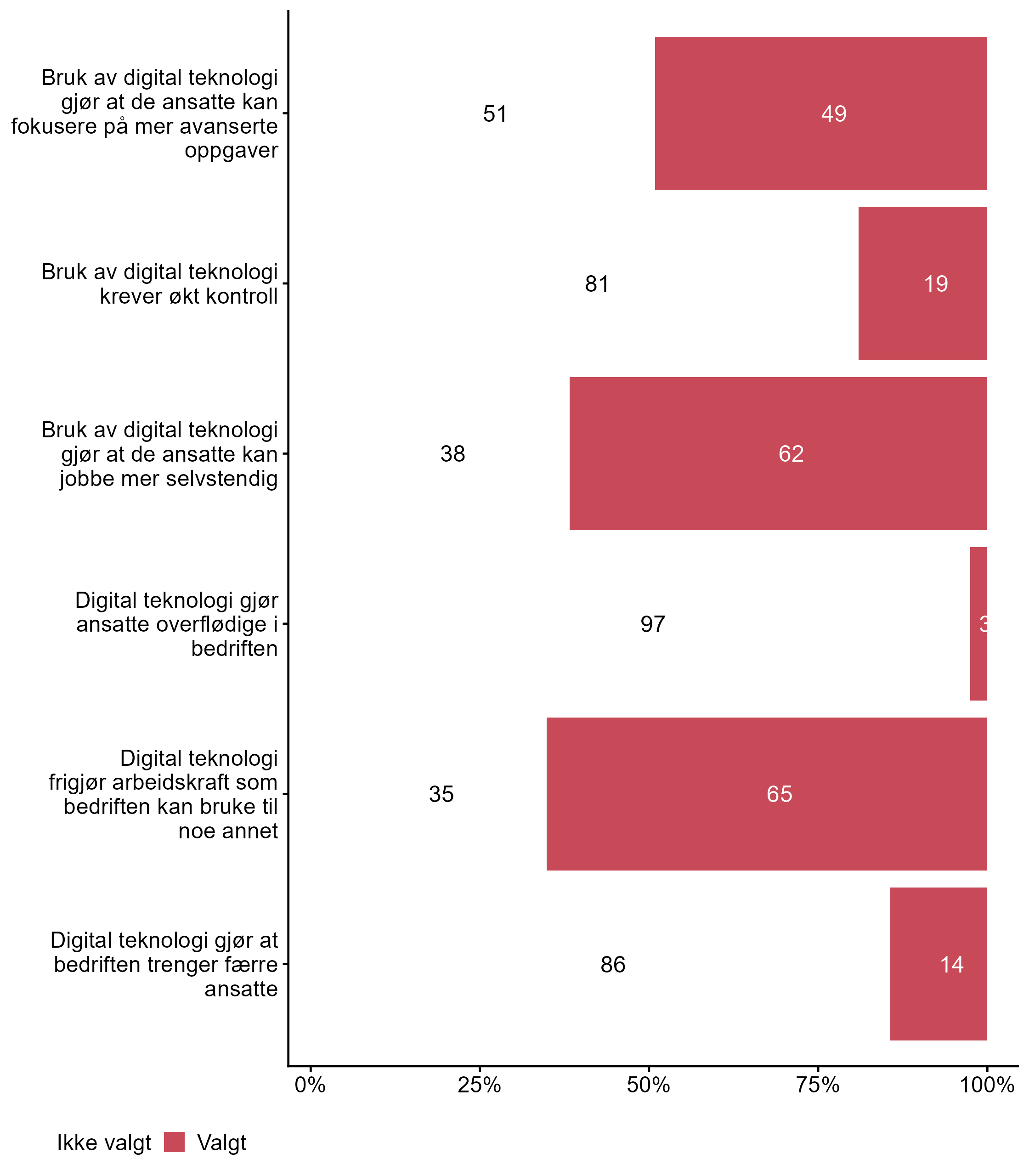 6.4 Hvilke påstander om hvordan bruk av digital teknologi påvirker kompetansebehovet passer for bedriften din?