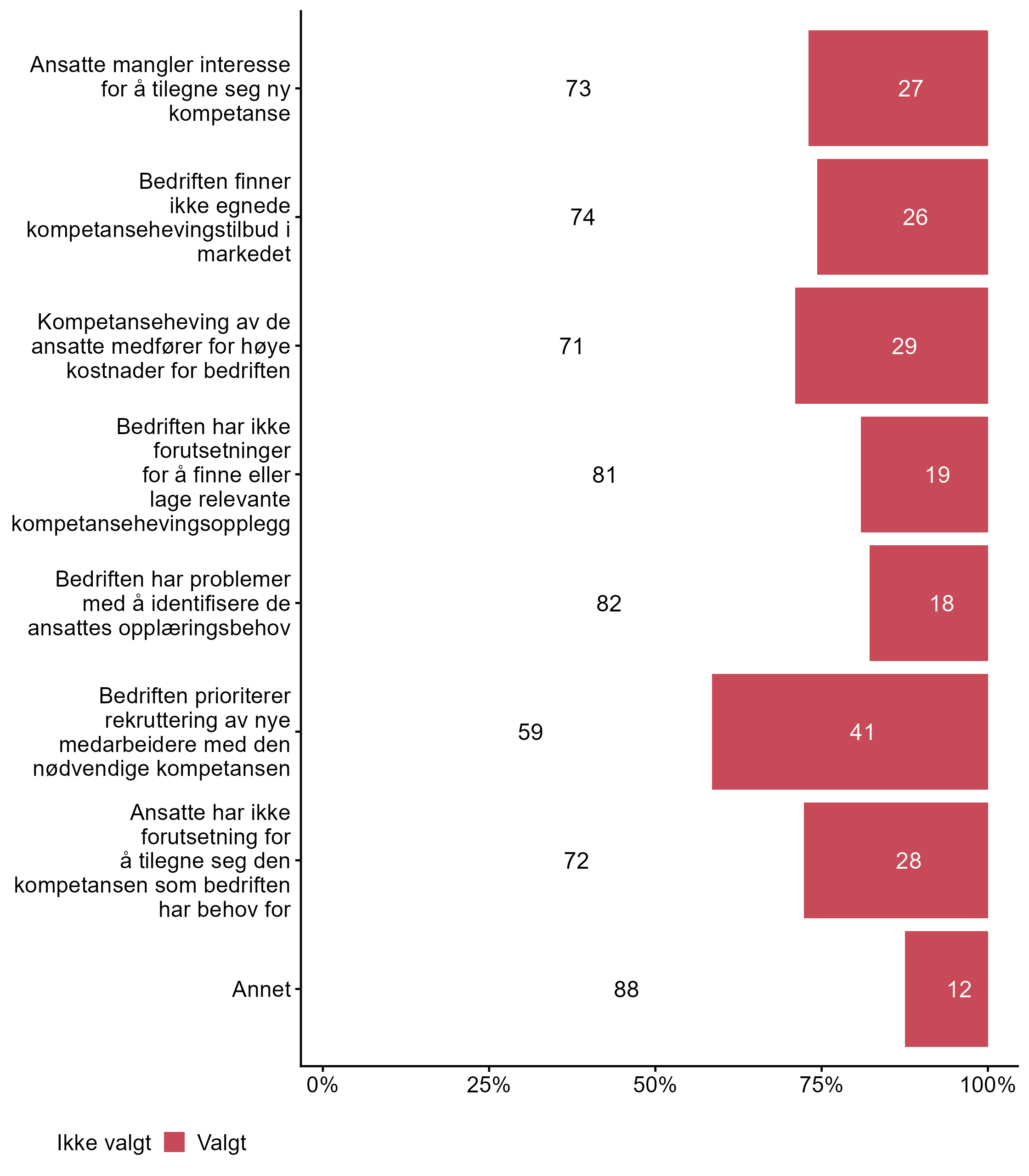 | Generativ kunstig intelligens (f.eks. produksjon av tekst, bilde, eller lignende) Spesialisert IKT-kompetanse | 69 | 31 | 696 |