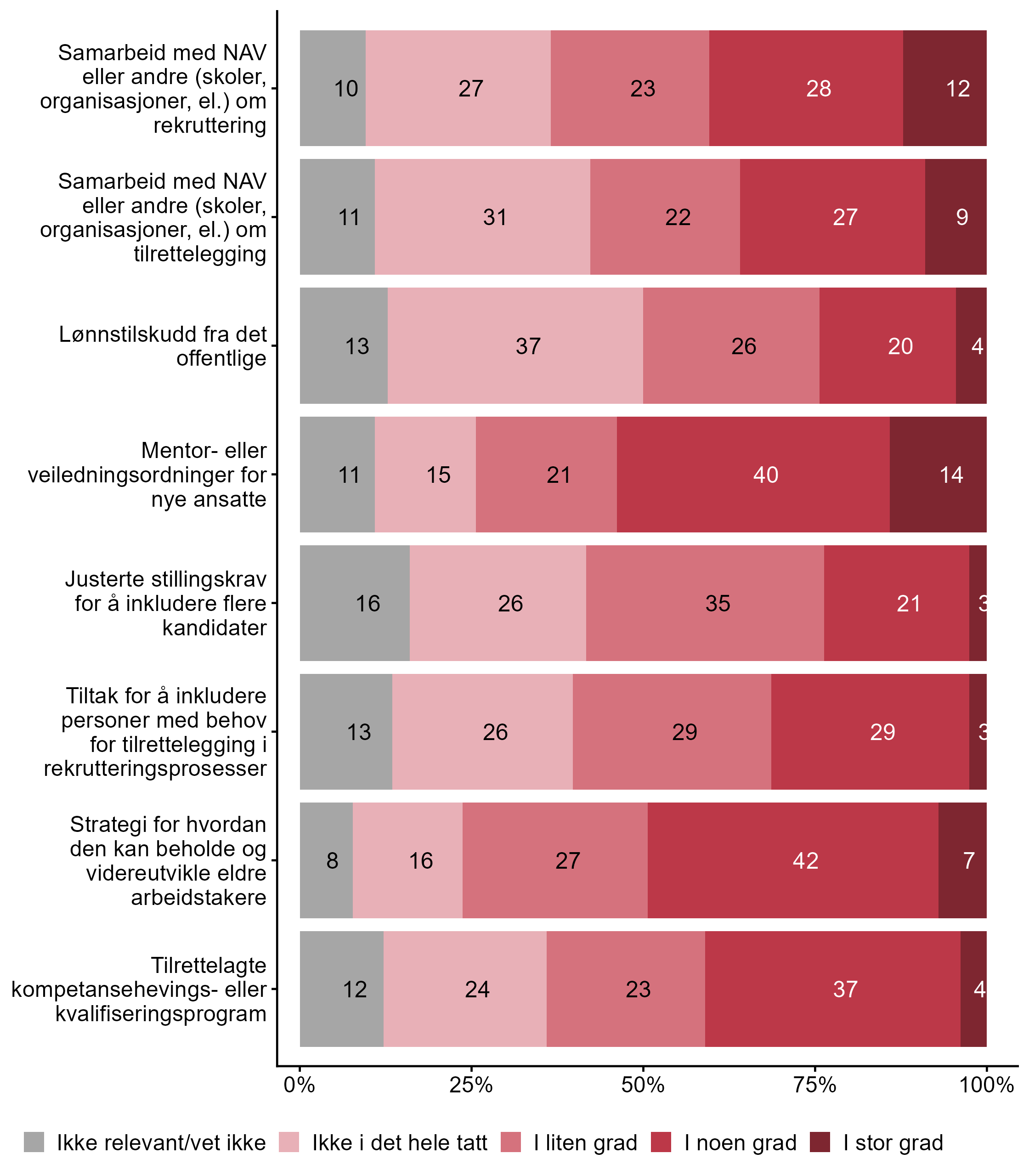 5.3 I hvilken grad har bedriften følgende tiltak eller ordninger i dag?
