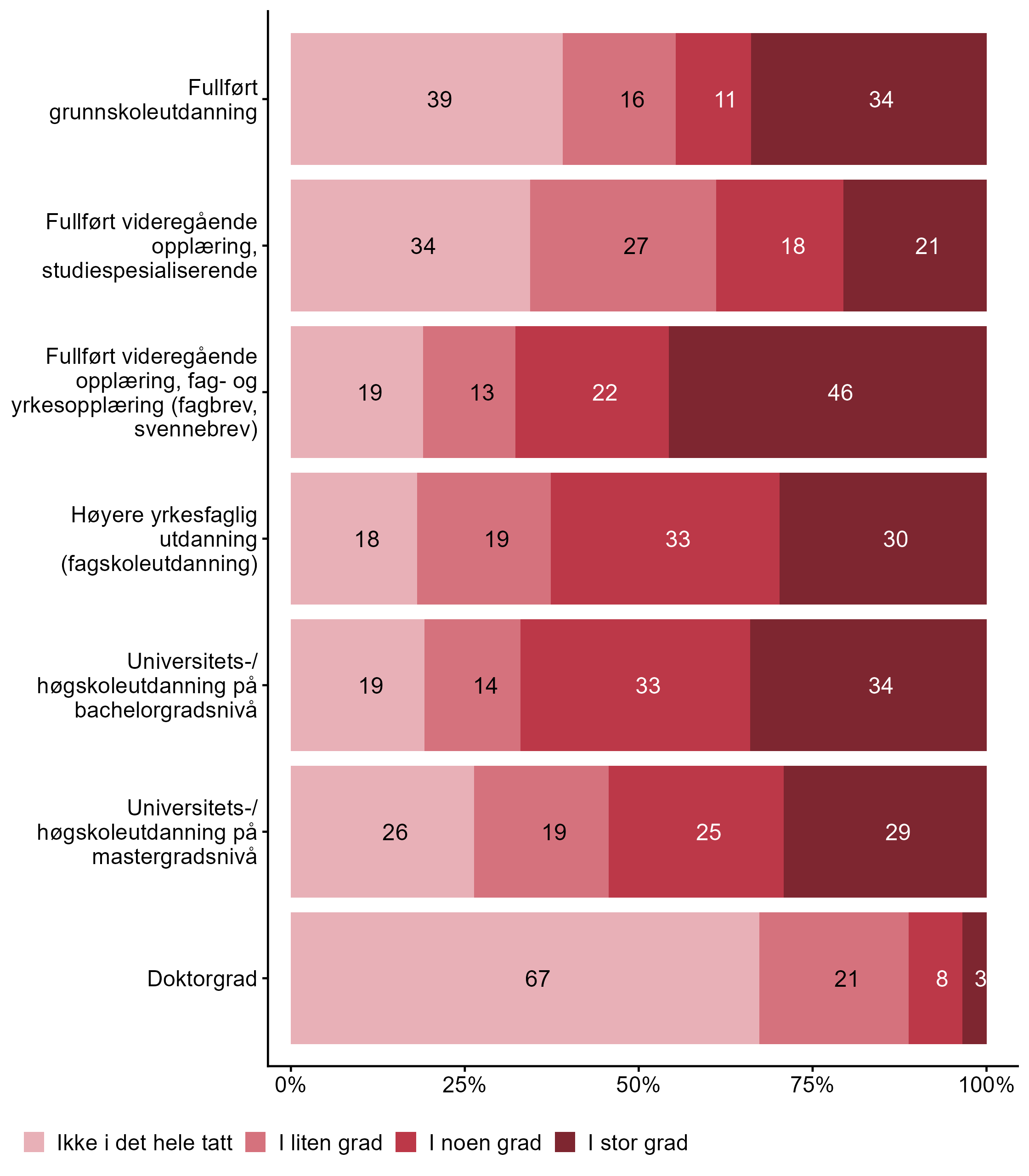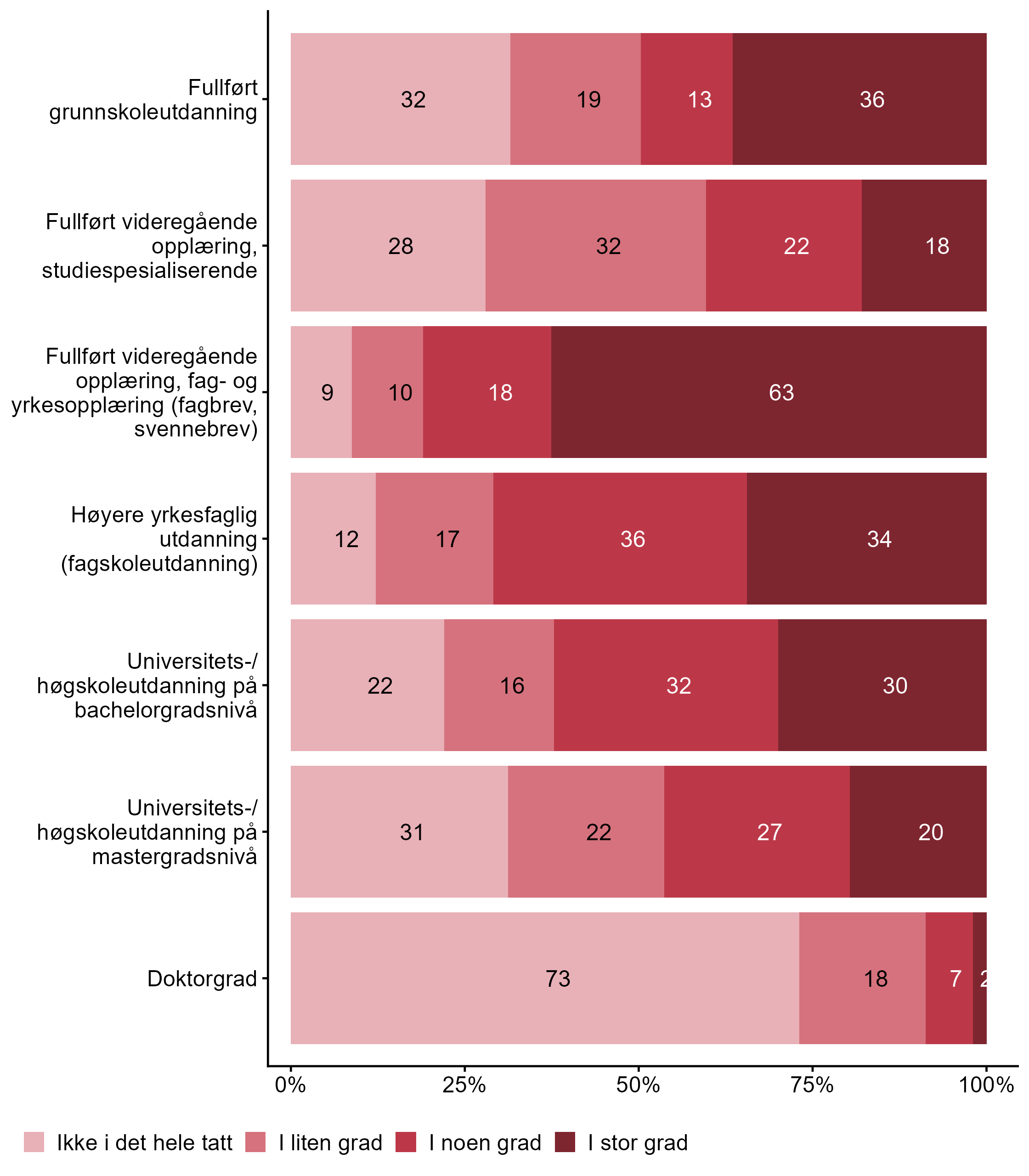 3.2 I hvilken grad er følgende utdanningsnivåer relevante for bedriften?