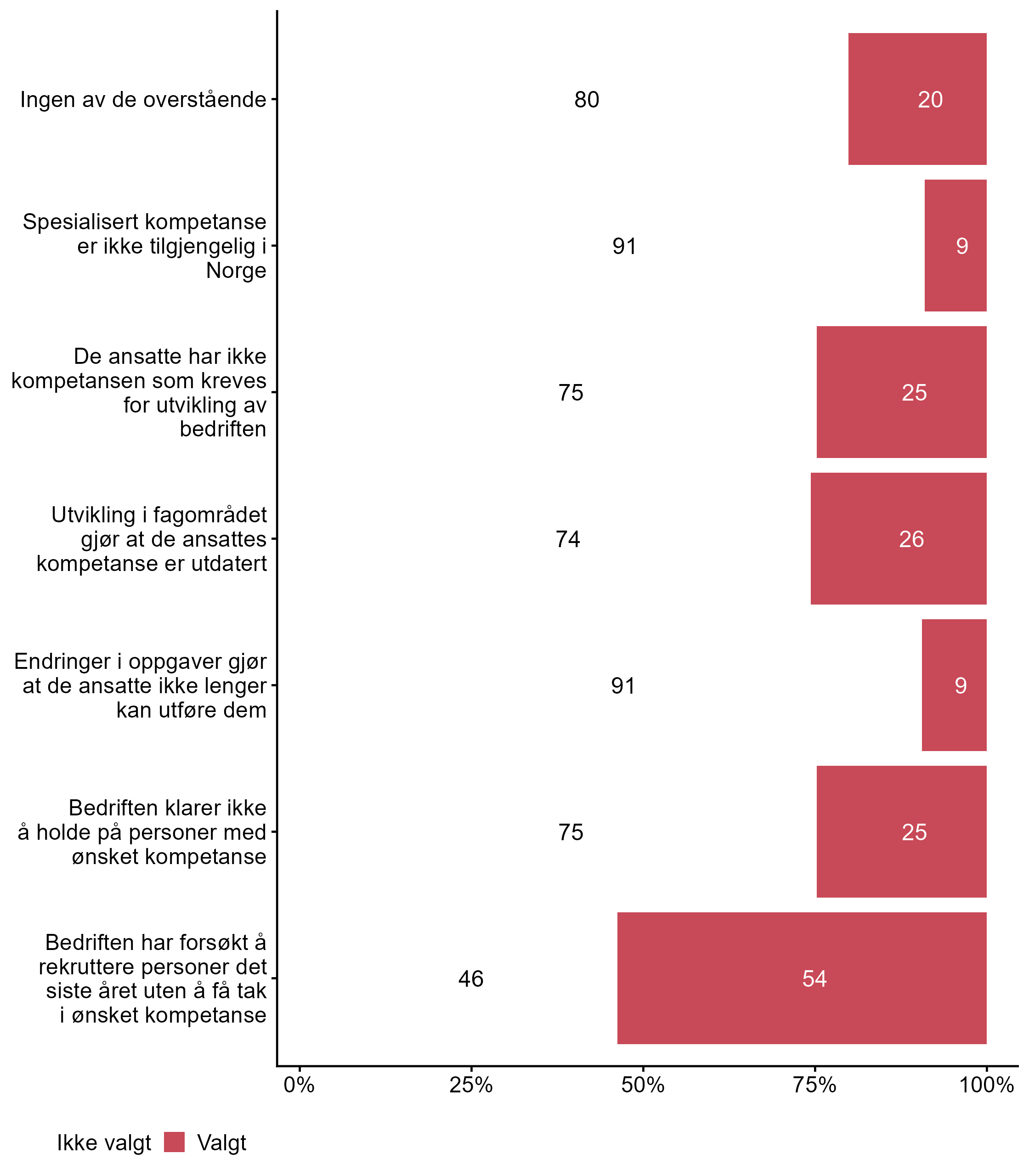 I dette kapittelet kan du sammenligne NHO Viken Oslo med andre bedrifters svar på spørsmål om kompetansebehov. Dette inkluderer i hvilken grad bedriften har behov for kompetanse innen spesifikke fagområder og utdanningsnivåer, samt årsaker til, og konsekvenser av, kompetansebehovet, og hvilke tiltak bedriften har for å dekke kompetansebehovet.
