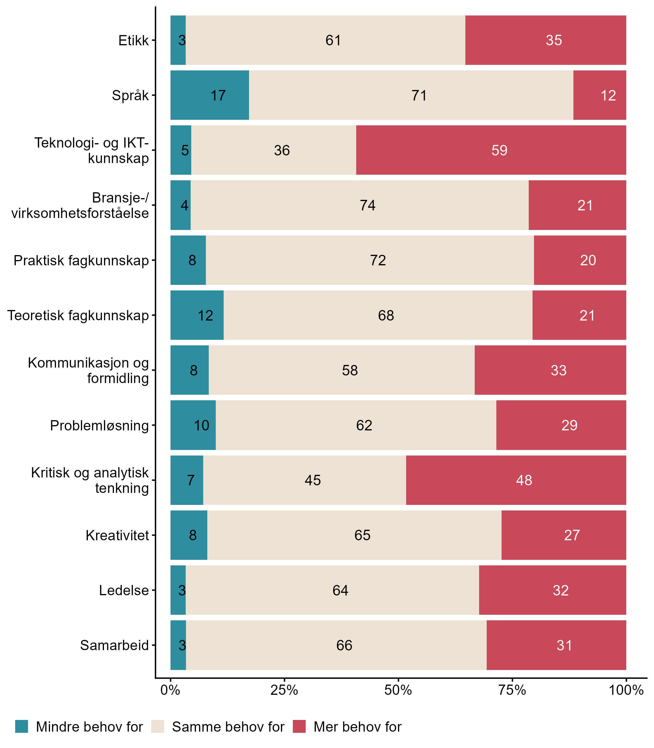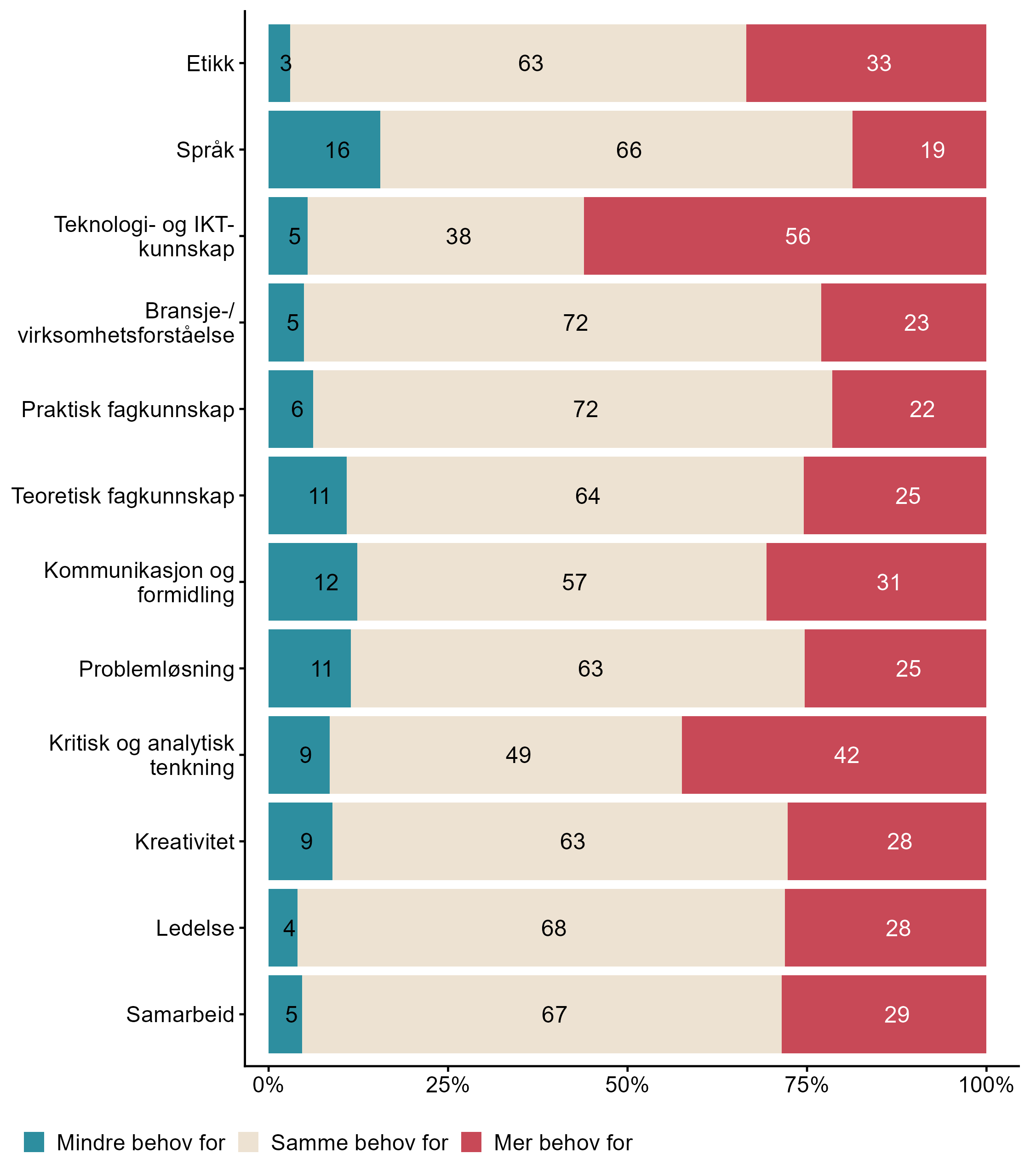 | Standard programvare (f.eks. Microsoft Office) Spesialisert IKT-kompetanse | 89 | 11 | 492 |
