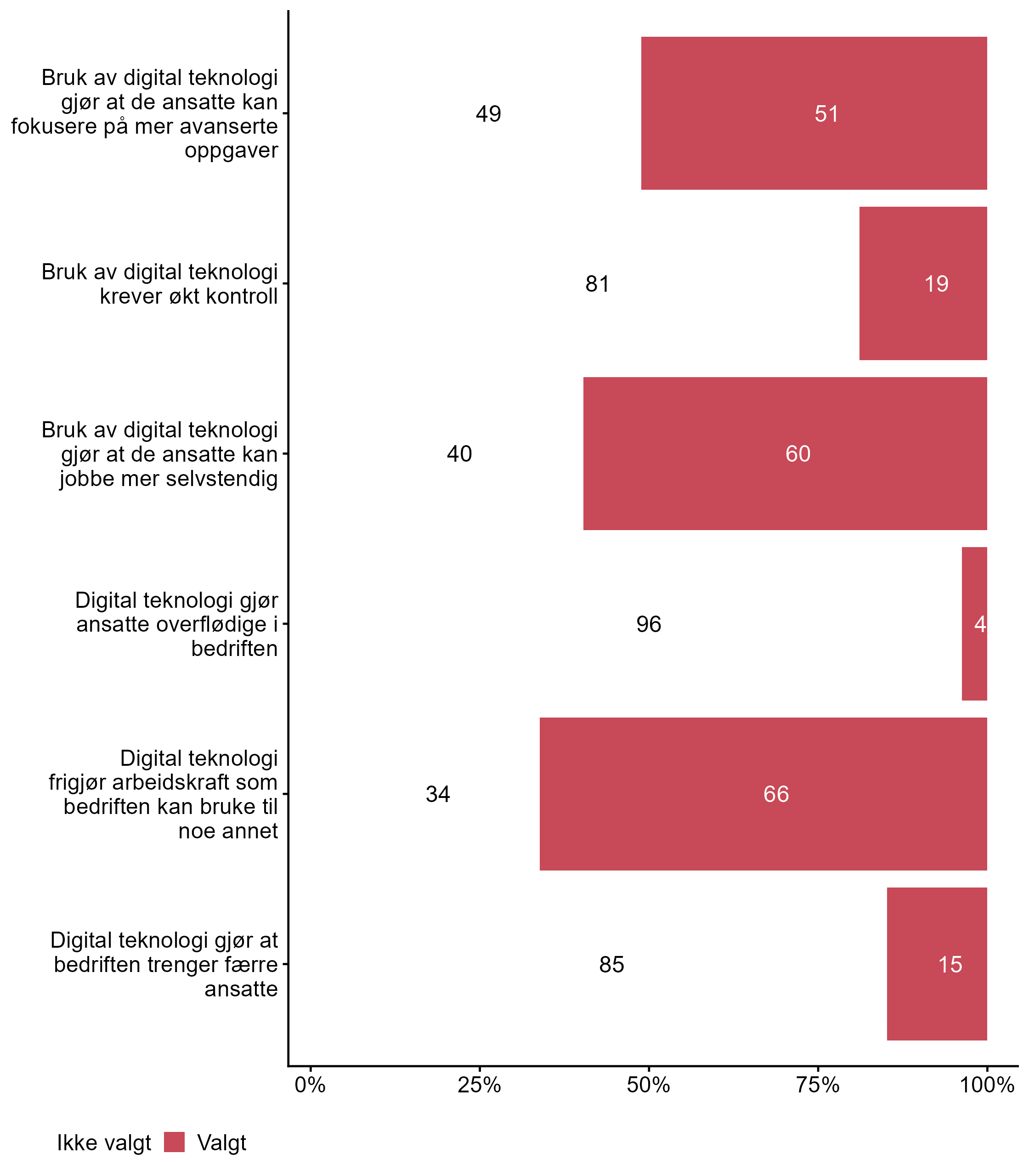 6.4 Hvilke påstander om hvordan bruk av digital teknologi påvirker kompetansebehovet passer for bedriften din?