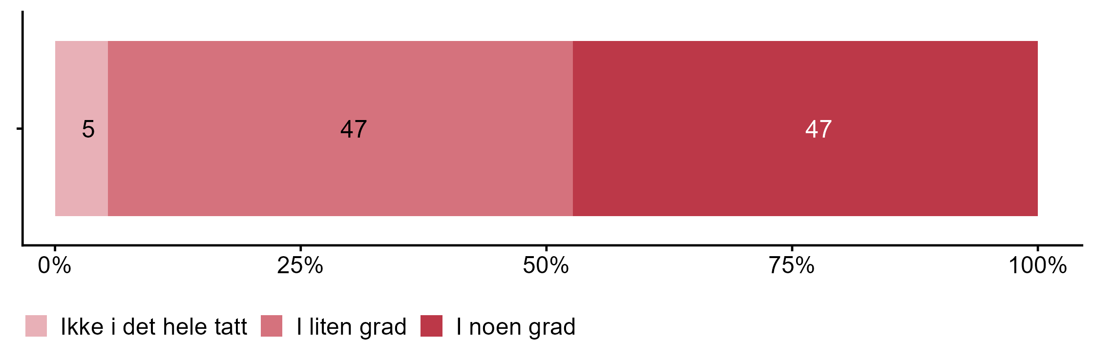 Vi spurte bedriftene i hvilken grad de hadde et udekket kompetansebehov i dag, i figur 1 viser vi svarfordelingen generelt for Finans Norge med resten av utvalget.