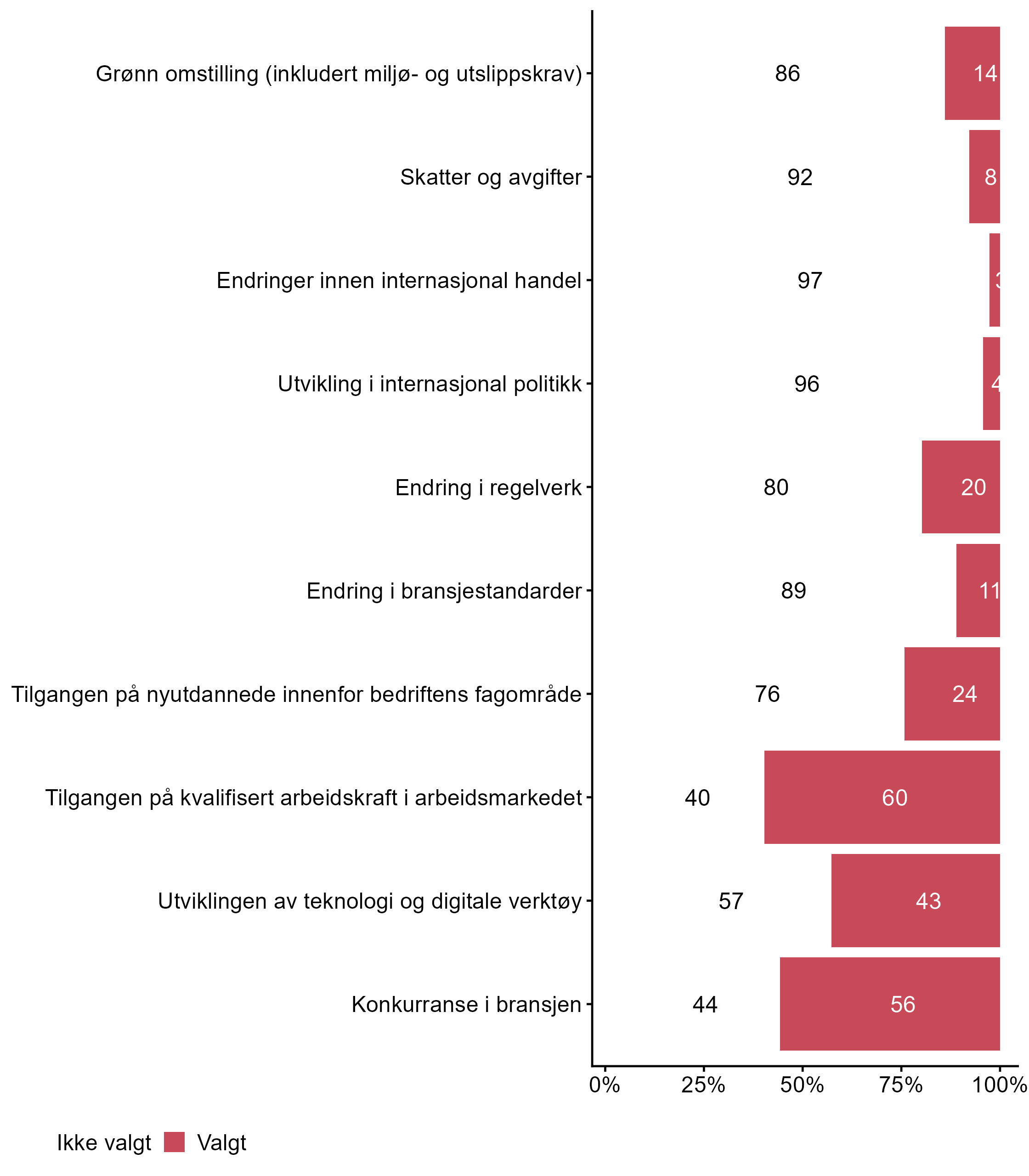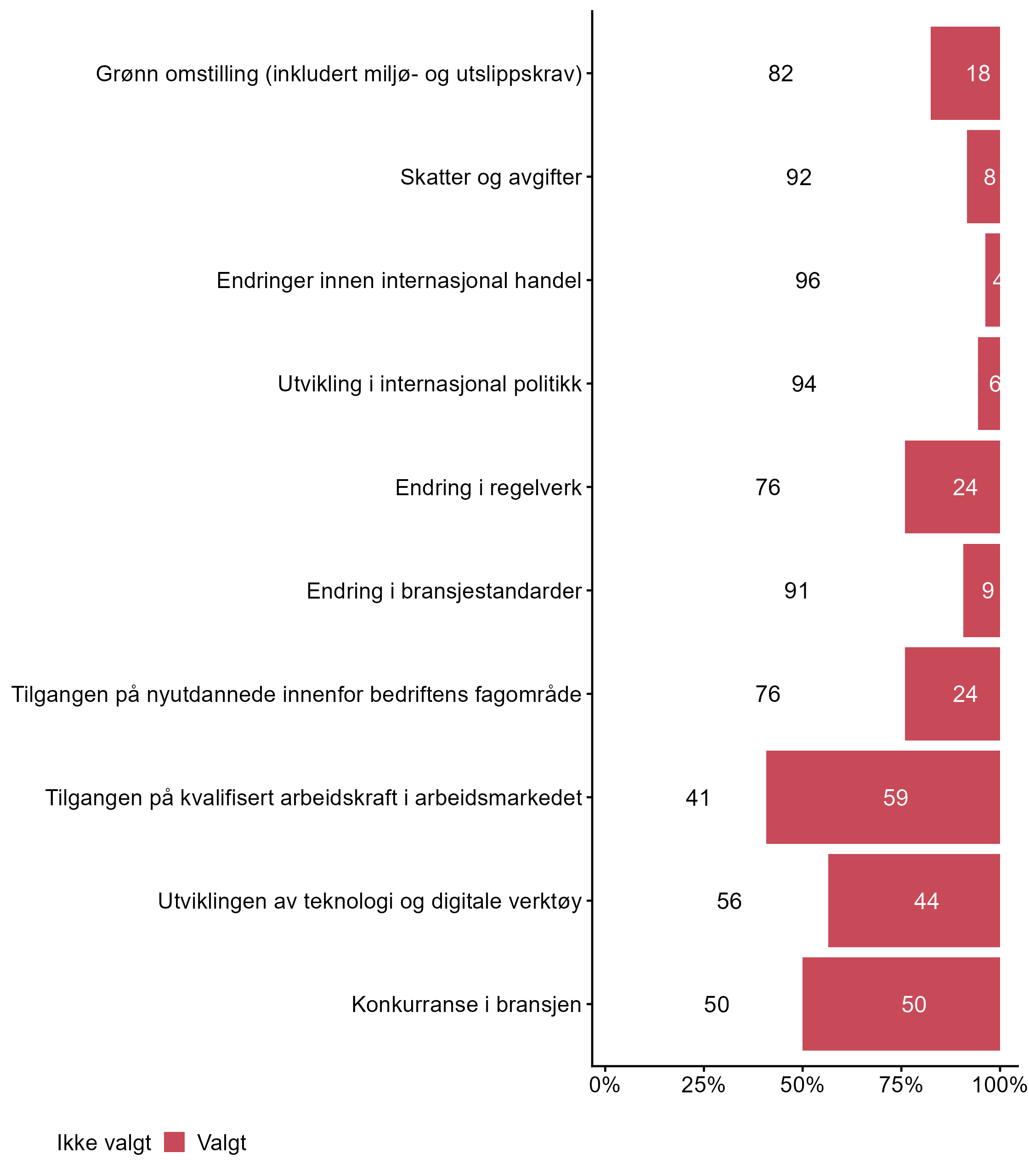 4.2 Hvilke tre av disse områdene vil du si at i størst grad har påvirket kompetansebehovet i din bedrift siste året? Kryss av for maks 3.
