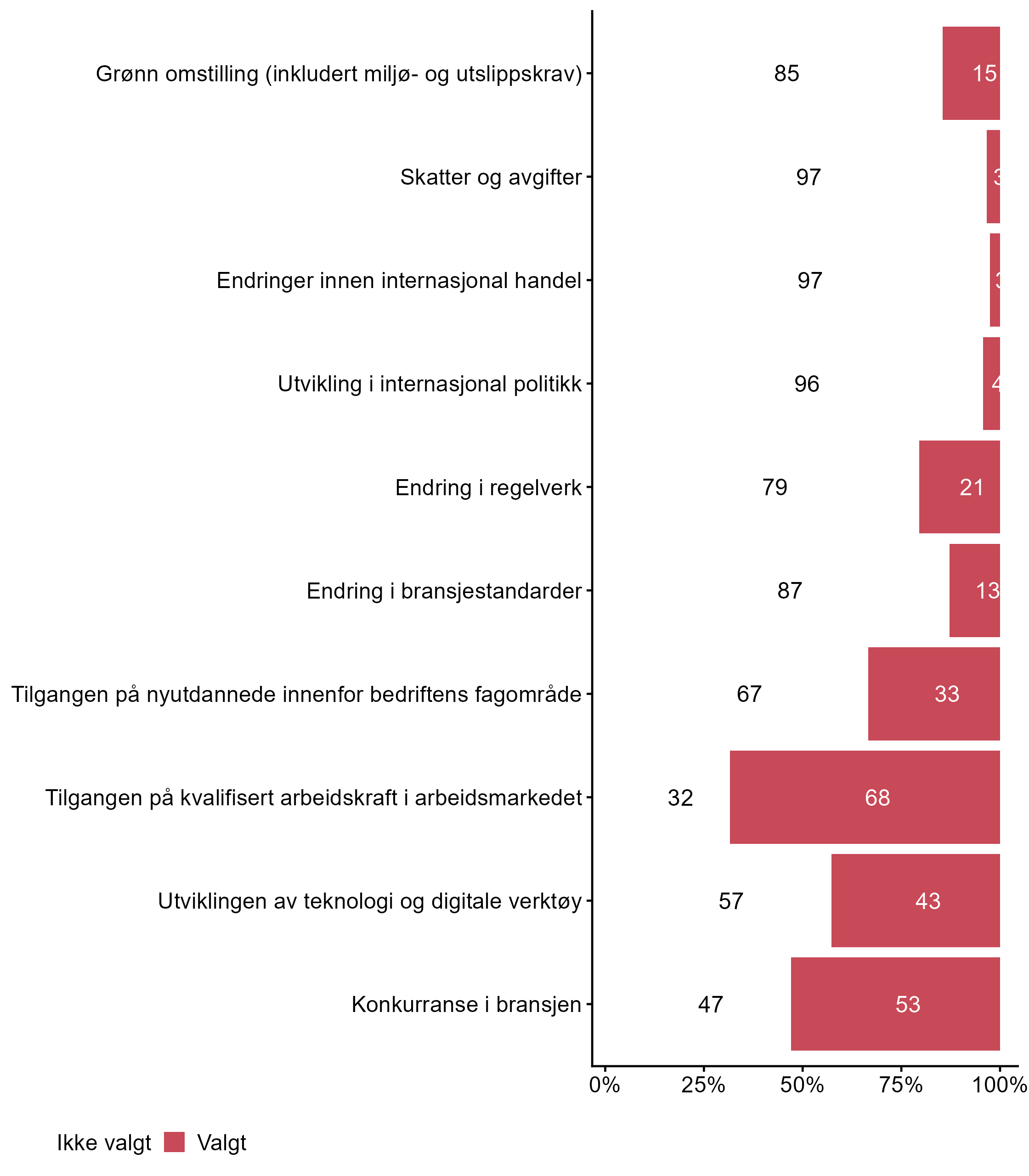 4.2 Hvilke tre av disse områdene vil du si at i størst grad har påvirket kompetansebehovet i din bedrift siste året? Kryss av for maks 3.