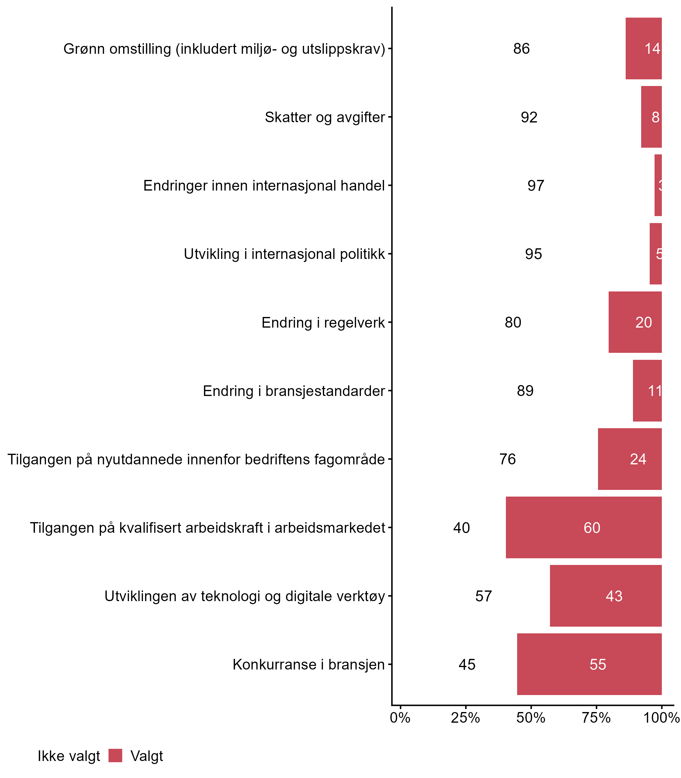 4.2 Hvilke tre av disse områdene vil du si at i størst grad har påvirket kompetansebehovet i din bedrift siste året? Kryss av for maks 3.